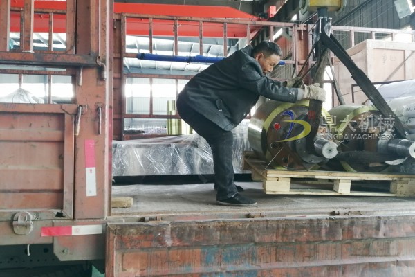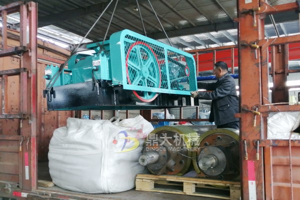 發(fā)往湖南懷化的400×250型對輥破碎機(jī)和輥輪一對