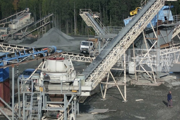 (料倉(cāng))--> 給料機(jī) --> 鄂式破碎機(jī) --> 圓錐式破碎機(jī) --> 振動(dòng)篩 --> 沖擊式破碎機(jī) --> 振動(dòng)篩 --> (可成成品)。其中間的機(jī)器之間可用輸送機(jī)相接。